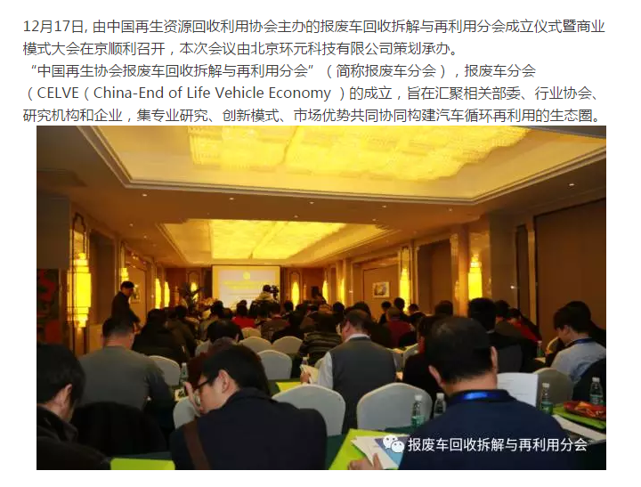 中再生協會報廢汽車分會成立 會議在京圓滿結束