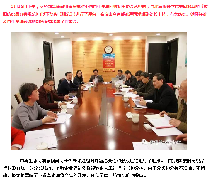 《廢舊紡織品分類規(guī)范》專家評審會在商務(wù)部成功召開
