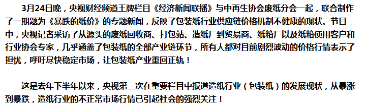 中再生協(xié)會廢紙分會聯(lián)手央視再調(diào)查,暴跌暴漲的紙價原罪在誰?