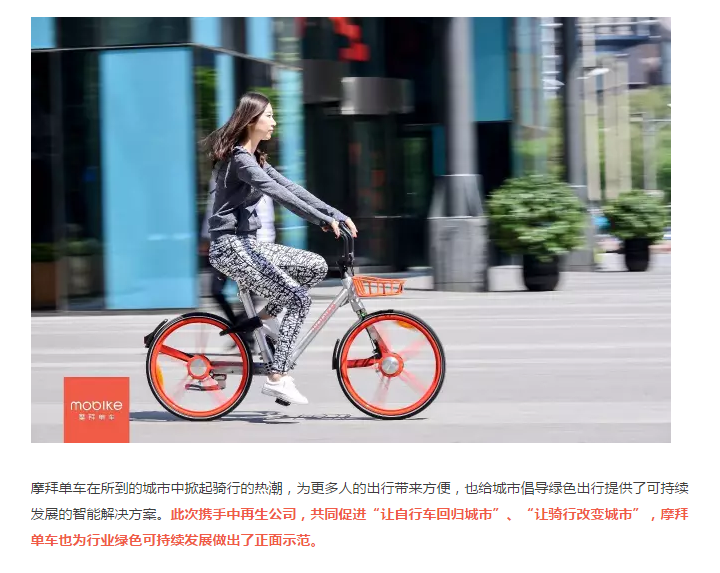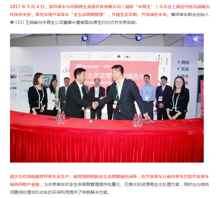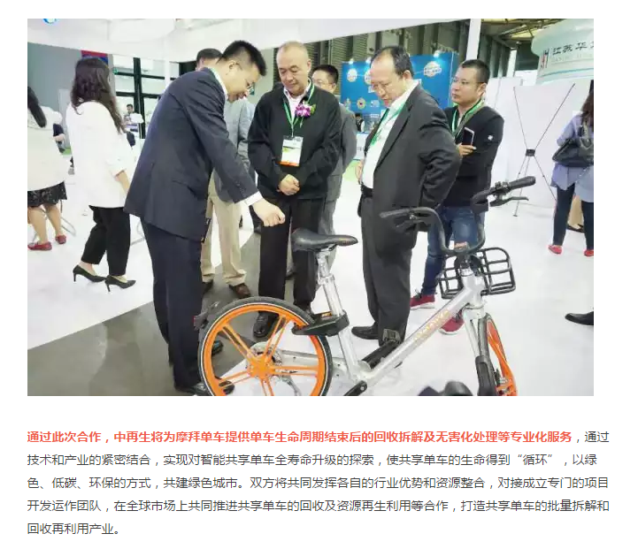 摩拜單車與中再生戰(zhàn)略合作 率先管理共享單車“全生命周期”